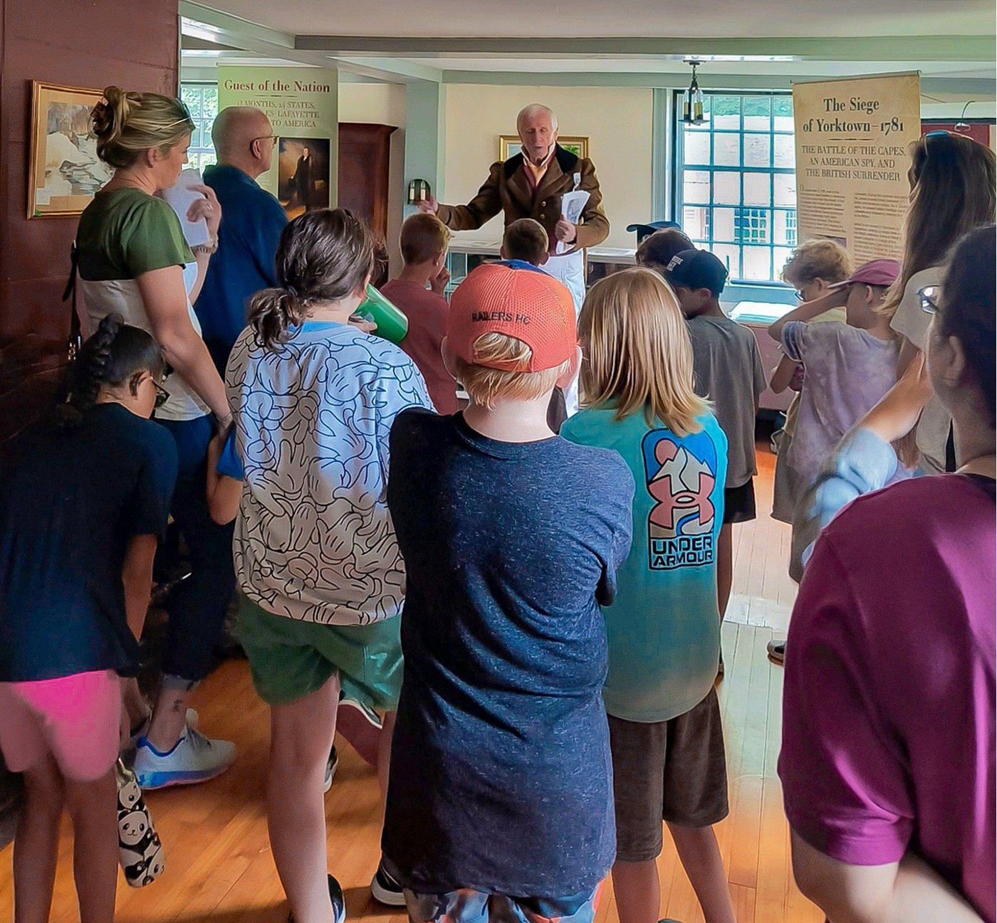 The June, 2024 town history tour for 3rd grade students with a visit from General Lafayette and Dorothea Jensen.