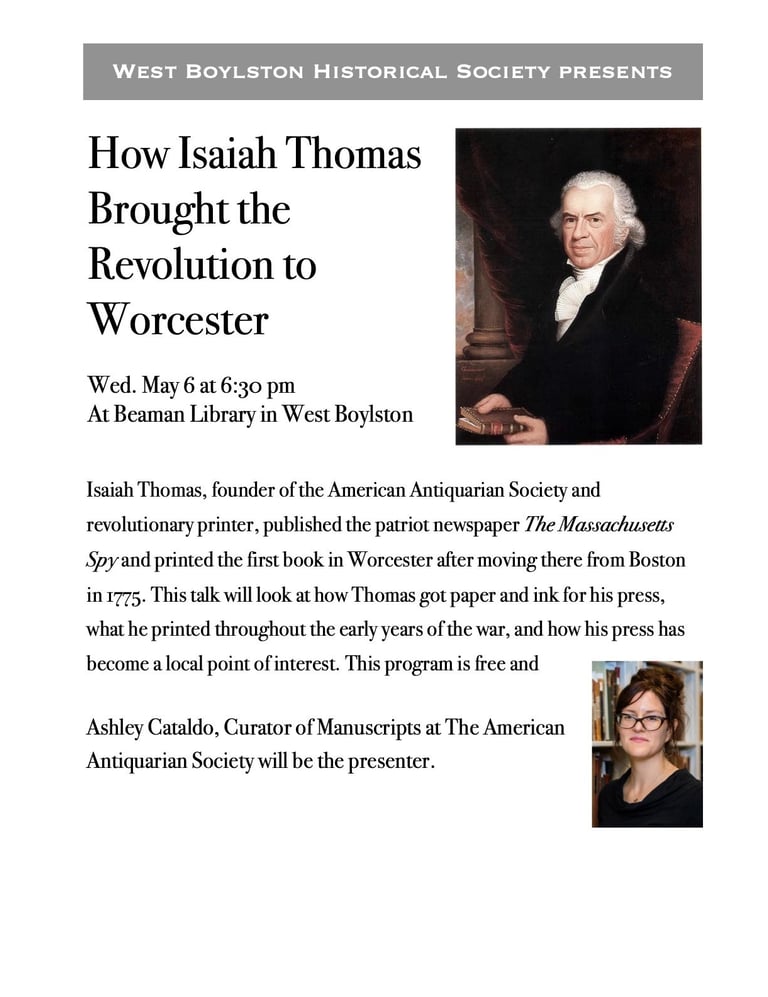 We hope you can join us for our next program on Wednesday, May 6 at 6:30 pm.