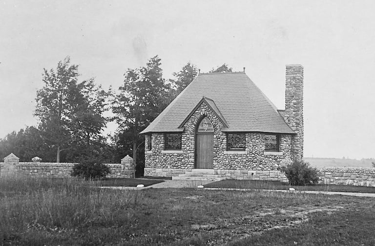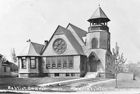 This Baptist Church, built in 1901 inherited the stained glass windows and numerous furnishings from the Old Stone Church when it was no longer in use.